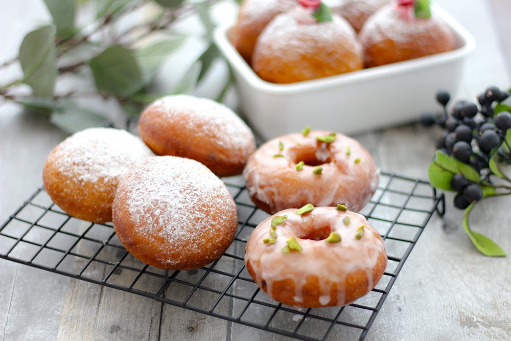 第2位は、ちょっぴり手間暇がかかるけど、表面はサクッと中はモチっとした食感が美味しい本格派生ドーナツのレシピです。コーヒーの苦味や酸味ど、ドーナツの甘さがお互いを引き立てる最強の組み合わせ! プレーン・レモン・フランボワーズの3種類のフレーバーがあるので、コーヒーも自分好みのテイストと組み合わせを探すのも楽しそうです♪