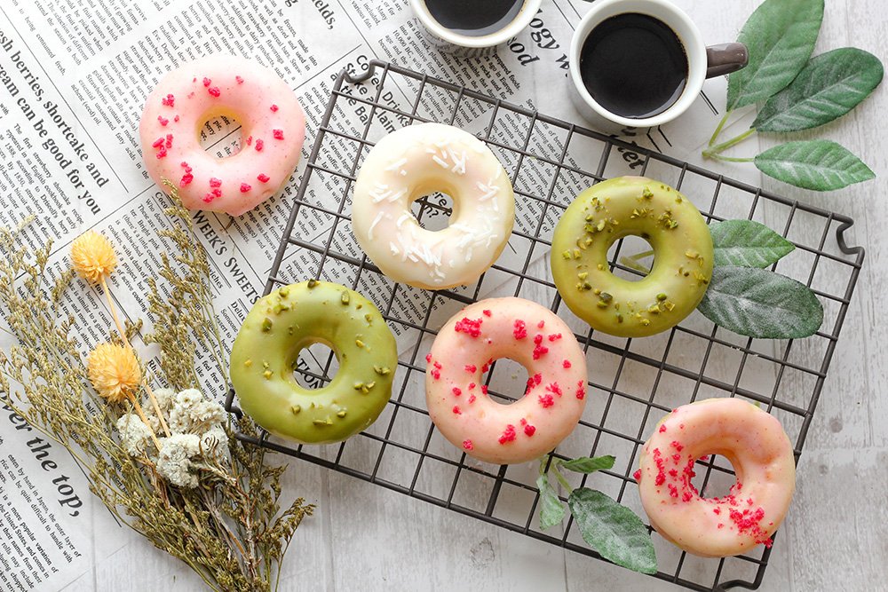 第3位にもドーナツがランクイン!生ドーナツは手間暇がかかるけど、こちらは混ぜて焼くだけの簡単レシピ。グルテンフリーかつ、油で揚げないのでヘルシーな仕上がりです。グレーズの色やトッピングもお好みに合せて変えられるので、コーヒーのドリップパックと一緒にプレゼントしても喜ばれそうですね♪