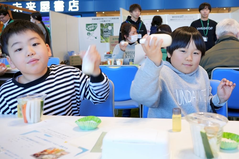 weeeat!としては東北初のイベント参戦でしたが、親子向けに実施した「オリジナル豆乳マヨネーズづくり体験」ワークショップが大盛況!1日2回の参加枠はほぼ満席となり、参加者アンケートでも満足度1位を獲得しました。「健康を体験して学べる」トークライブやキッズダンスステージなど、他にも盛りだくさんのコンテンツで終始賑わいを見せたイベント会場の様子をレポートします。